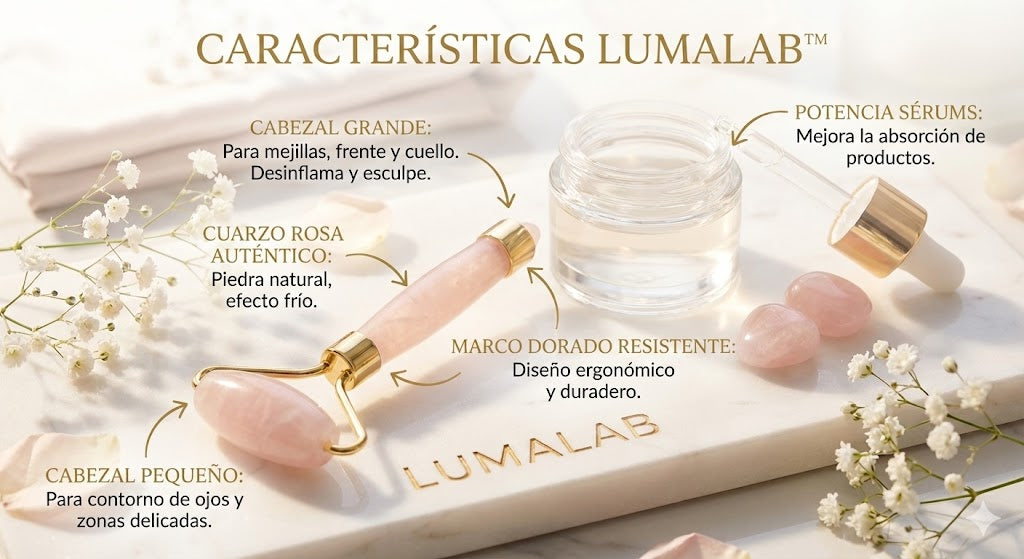 Rodillo de Cuarzo Rosa Premium | Masajeador Facial Antiedad LUMALAB